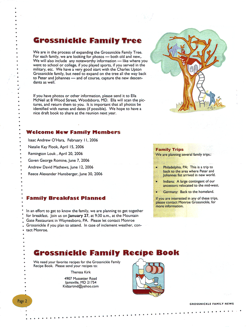 | I attended the 75th Annual Reunion of the Grossnickle Family in Myersville, Maryland, October 14, 2007. It was great fun to visit the area where my ancesters settled back in the 1700s, and meet some of my long lost relations. They have a reunion every year. If you are a Grossnickle and wpould like to go sometime, they'd love to have you! Even if you can't attend, Monroe would love to hear from you. He's collecting as much information as he can find about the family.